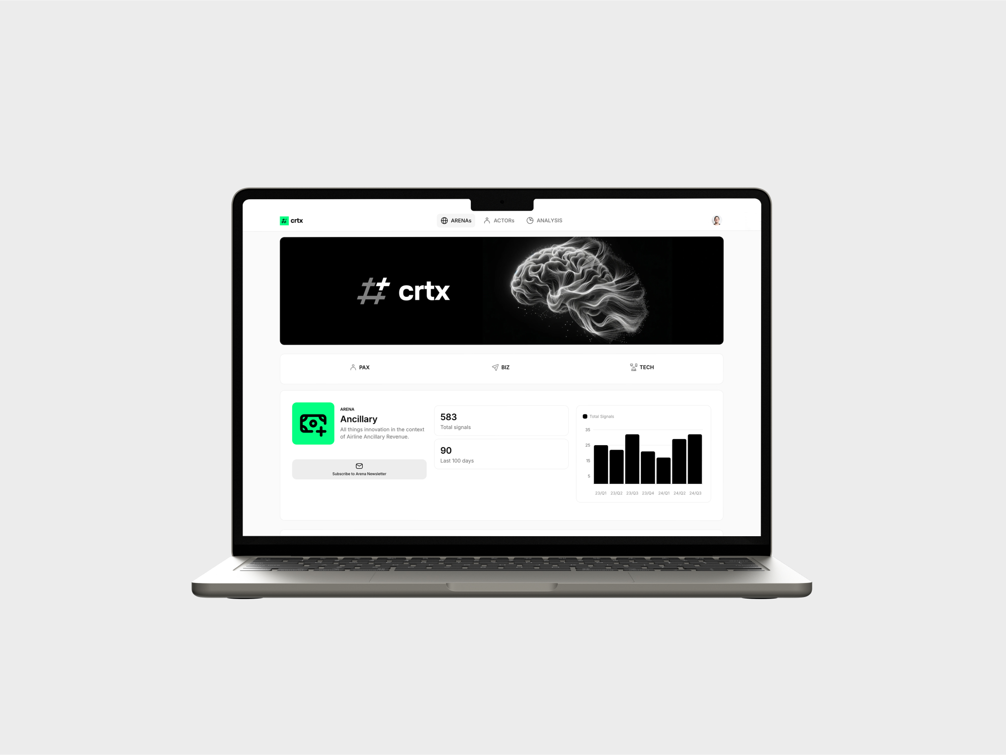 The platform centralizes strategic intelligence - information gained from external data sources to create agenda-setting insights. CRTX covers a broad spectrum of intelligence applications, from market and competitor analysis to trend watching to knowledge management.